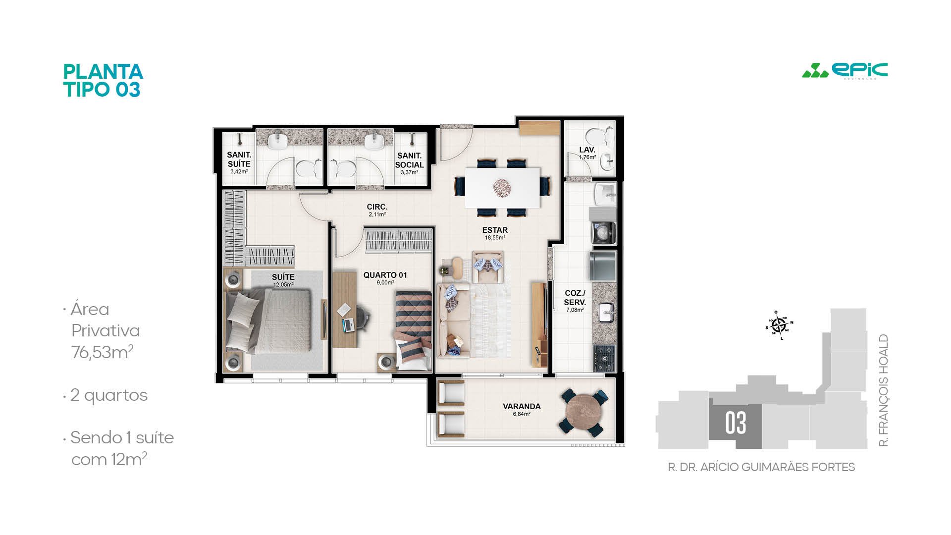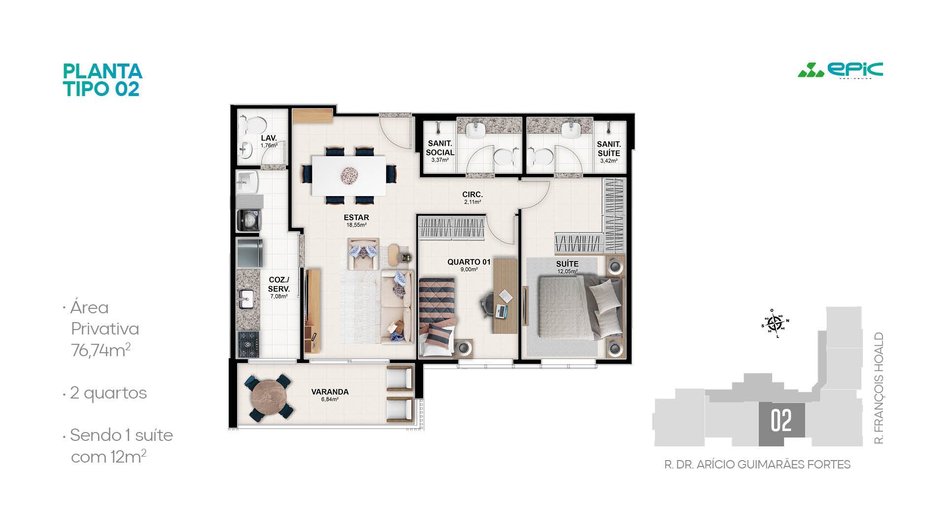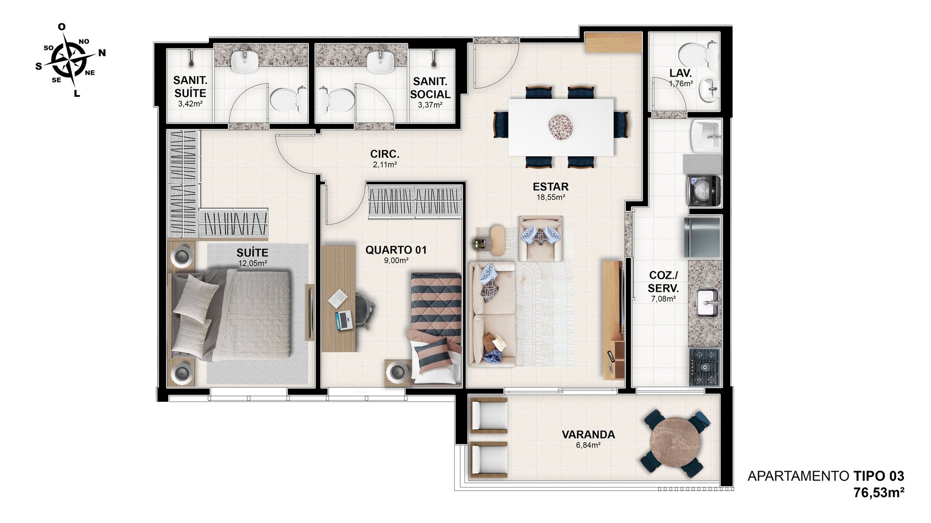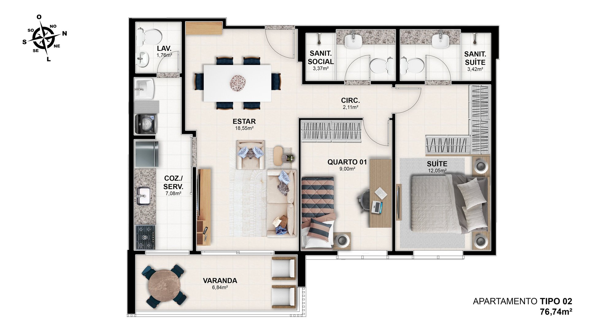 2 Quartos|76m²